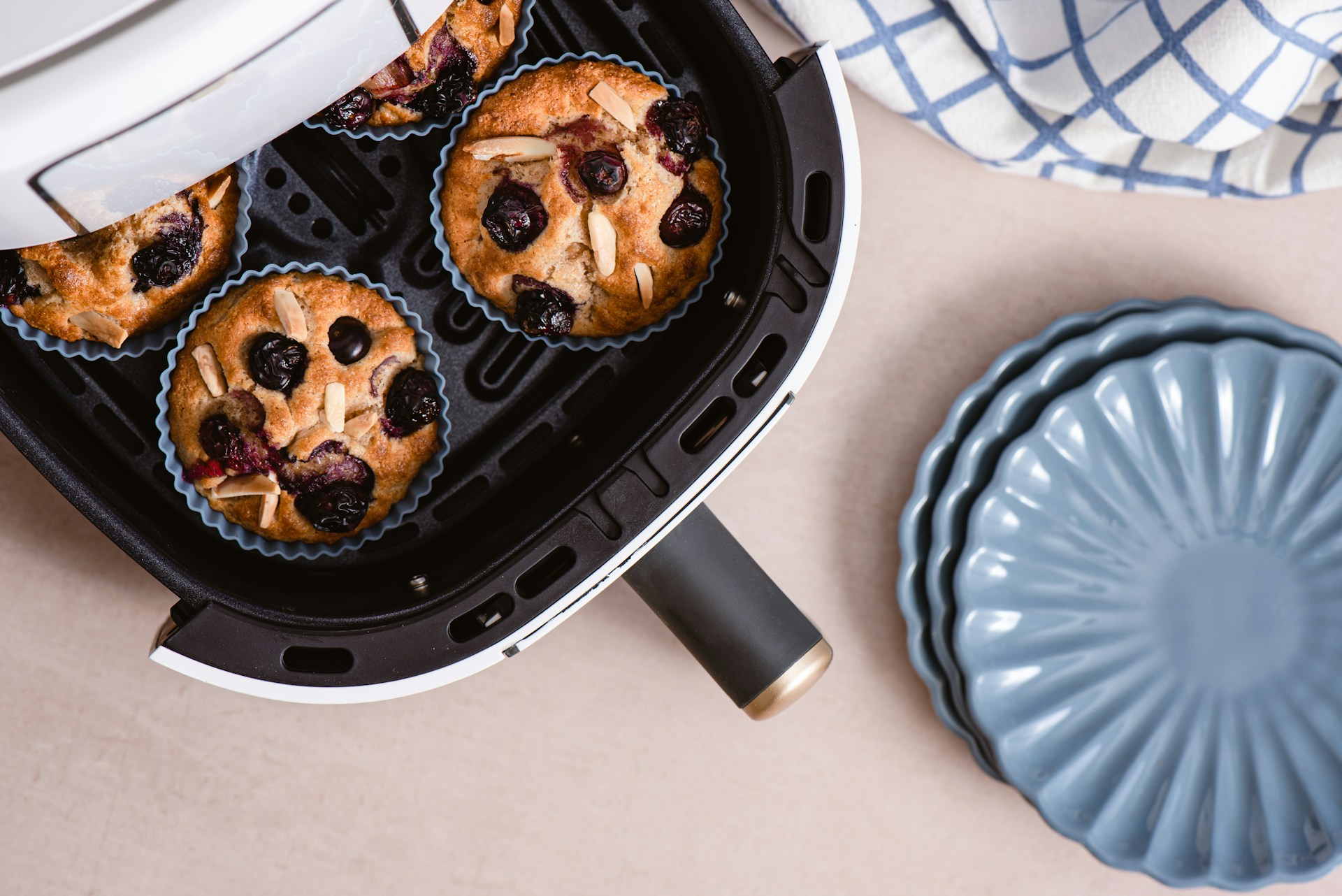 Nie każdy wie, że w airfryerze można piec desery. Dzięki równomiernemu rozprowadzaniu powietrza ciasta i muffinki wychodzą lekkie, a kruche wypieki złociste jak z piekarnika. Idealne rozwiązanie, gdy chcesz coś słodkiego, ale bez nagrzewania całego piekarnika.