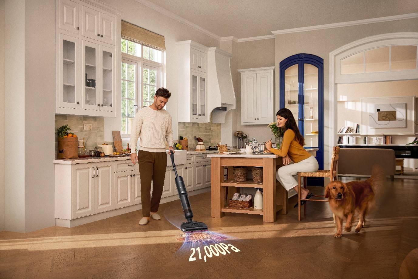 Odkurzacze Wet&Dry to odpowiedź na codzienne sytuacje, w których nie ma czasu na długie sprzątanie. Wylane mleko, lepka podłoga po spotkaniu ze znajomymi, plamy po spacerze z psem – wszystkie te problemy rozwiązuje jednoczesne odkurzanie i mopowanie. Dreame H15S dzięki silnikowi generującemu moc ssania do 21.000 Pa skutecznie usuwa zarówno zabrudzenia stałe, jak i płynne. W połączeniu z wałkiem mopującym obracającym się z prędkością 480 obr./min tworzy duet, który radzi sobie nawet z zaschniętymi plamami czy tłustymi zabrudzeniami.