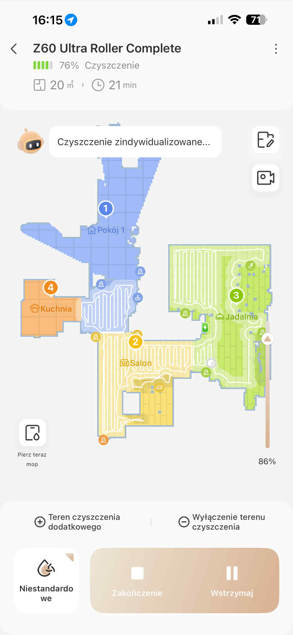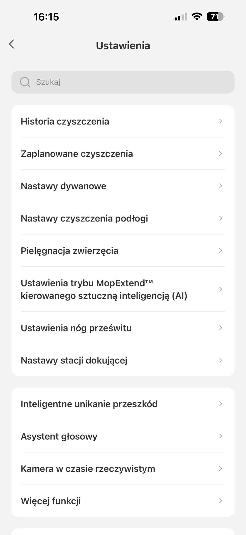 Proste, ale bardzo praktyczne. Ja ustawiłem zwykły płyn w salonie i zapachowy w kuchni. Działało bezbłędnie, a robot sam wybierał odpowiedni roztwór. To przykład funkcji, która nie jest efekciarska, ale po prostu przydaje się w codziennym życiu.