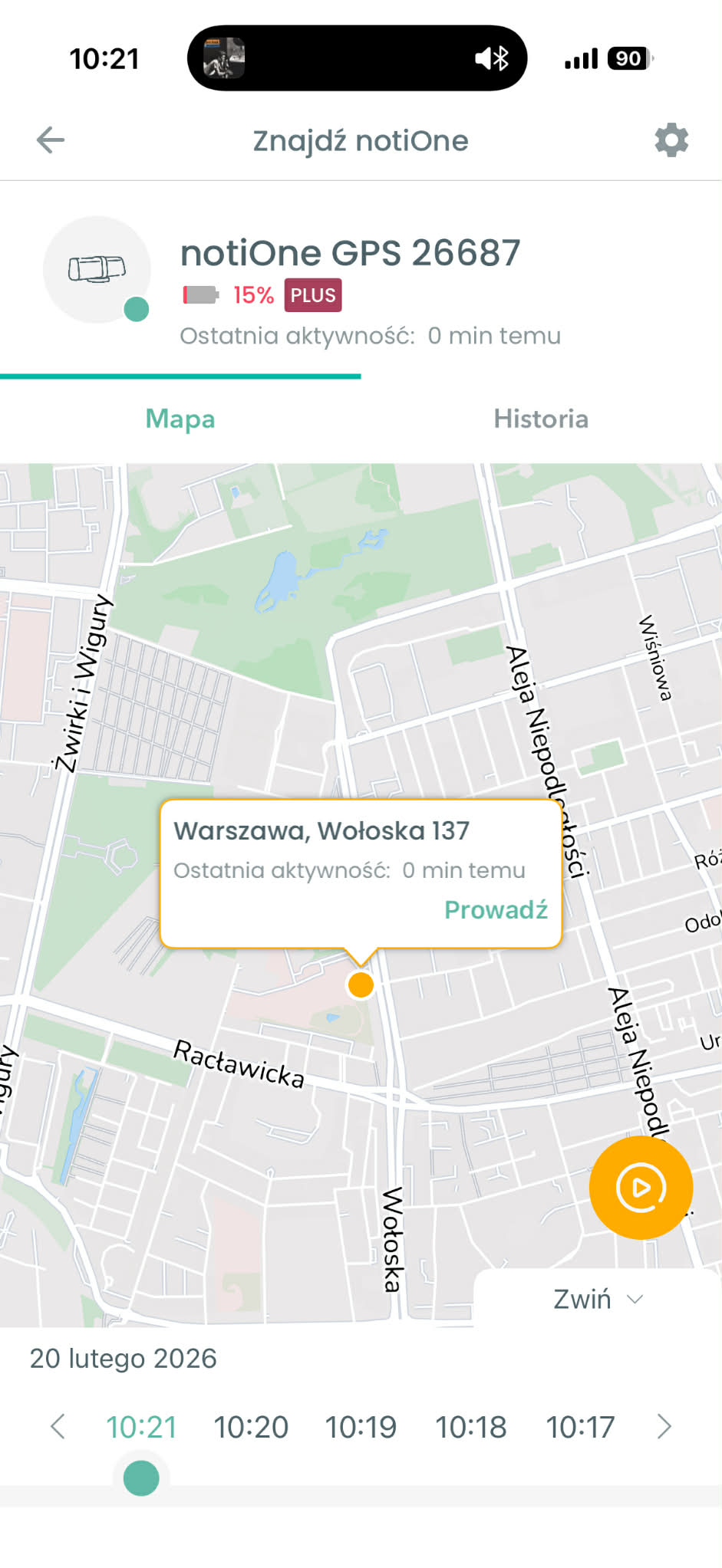 Najbardziej charakterystyczny element wersji PLUS to tryb LIVE. Producent opisuje go jako możliwość śledzenia ruchu na żywo przez 30 minut. I to jest dokładnie ten typ funkcji, który działa jak przełącznik psychologiczny. Z mapy z informacją gdzie to jest przechodzisz na mapę: widzę, jak to się przemieszcza. W normalnym, spokojnym użytkowaniu pewnie będziesz korzystać z LIVE rzadko, bo nie ma do tego zazwyczaj potrzeby. Ale gdy pojawia się ryzyko kradzieży lub realny alert o ruchu, właśnie wtedy tryb LIVE ma największą wartość.