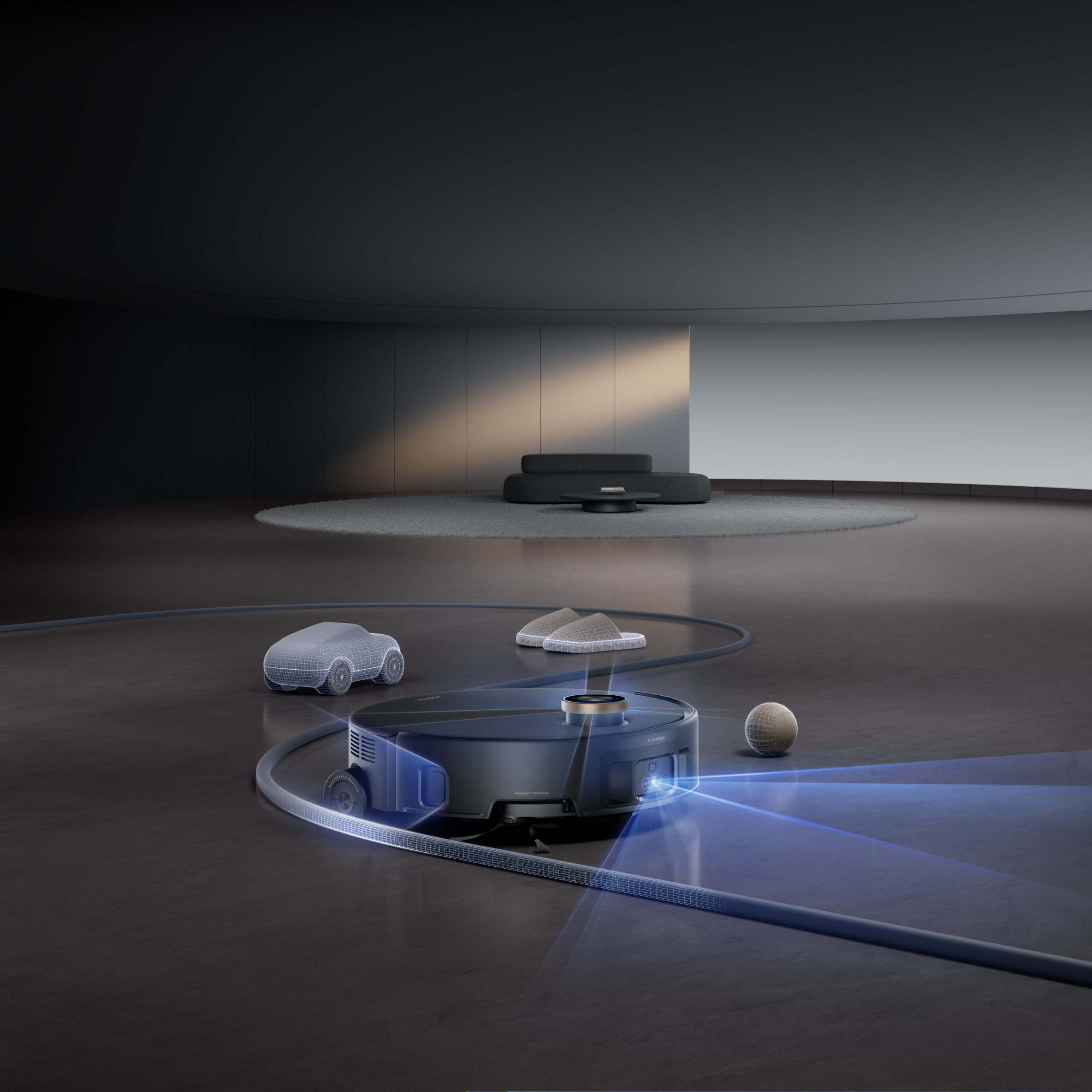 System FlexScope™ opiera się na wysuwanym sensorze DToF, który dopasowuje wysokość pracy. W praktyce oznacza to, że robot potrafi obniżyć się do 96 mm, by zmieścić się pod meblami, a następnie podnieść w otwartej przestrzeni, aby dokładniej zeskanować pomieszczenie. Efektem jest precyzyjna mapa i sprzątanie, które nie zostawia przypadkowych „białych plam”.