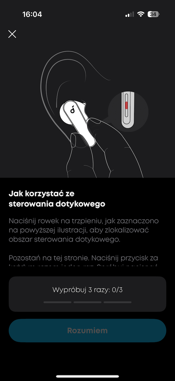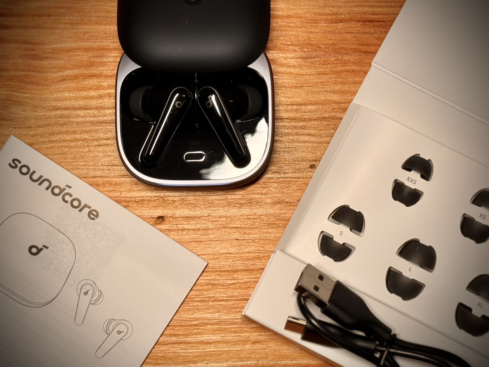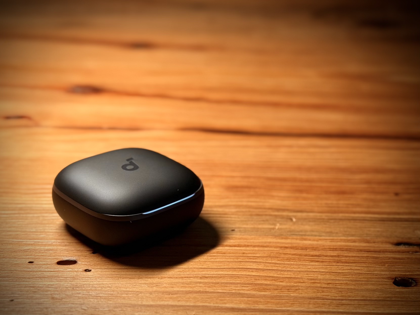 Etui jest typowo soundcore’owe: praktyczne, bez ekstrawagancji, ładowane normalnie, bez poczucia, że to biżuteria, którą boisz się porysować. W kieszeni nie robi z ciebie człowieka z kamieniem w spodniach, ale też nie jest mikroskopijne. Czyli standard, który po prostu nie przeszkadza.