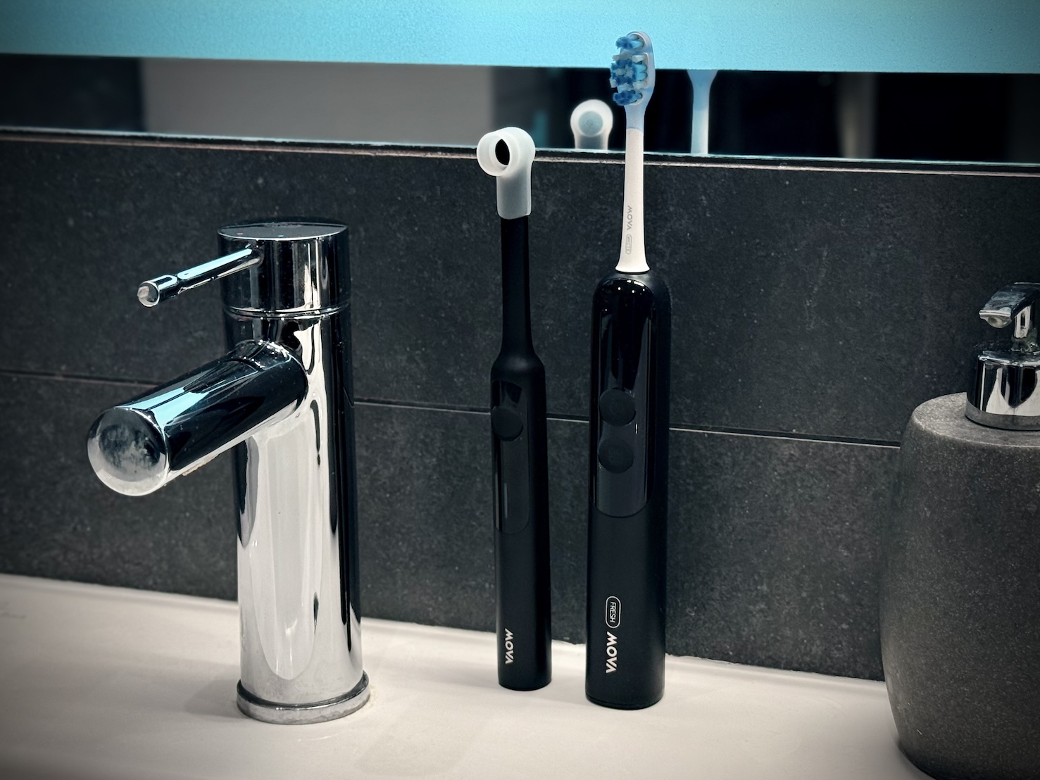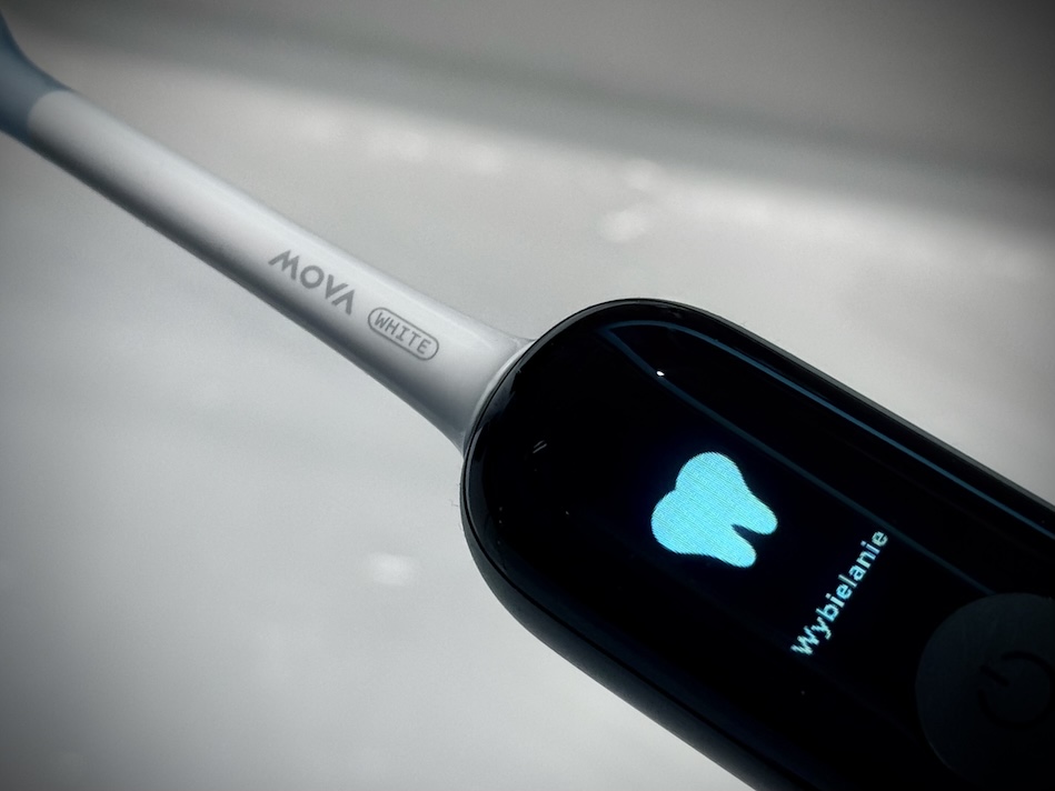 MOVA Fresh 20 Sensus to szczoteczka z gatunku tych, które nie tyle myją zęby, co próbują ogarnąć całą higienę jamy ustnej za użytkownika. Zamiast samego silnika i końcówki mamy tu kamerę endoskopową, algorytmy AI do wykrywania płytki, wibracje soniczne połączone z ruchem zamiatającym, pasek świetlny pilnujący nacisku, przewodnik głosowy przez przewodnictwo kostne i aplikację, która zamienia mycie zębów w coś pomiędzy raportem a mini-grą.