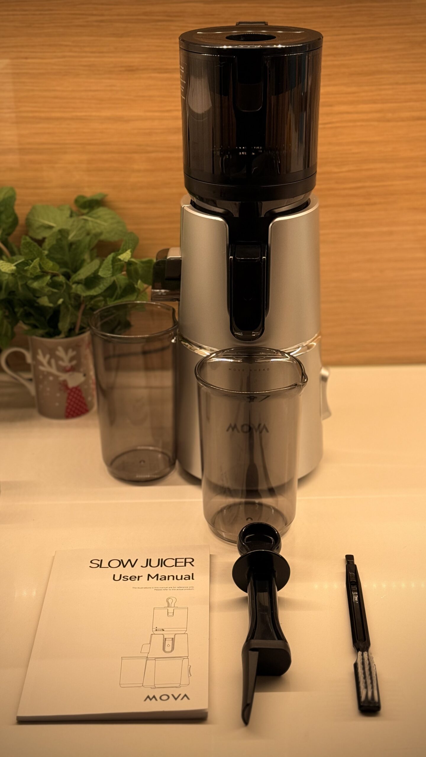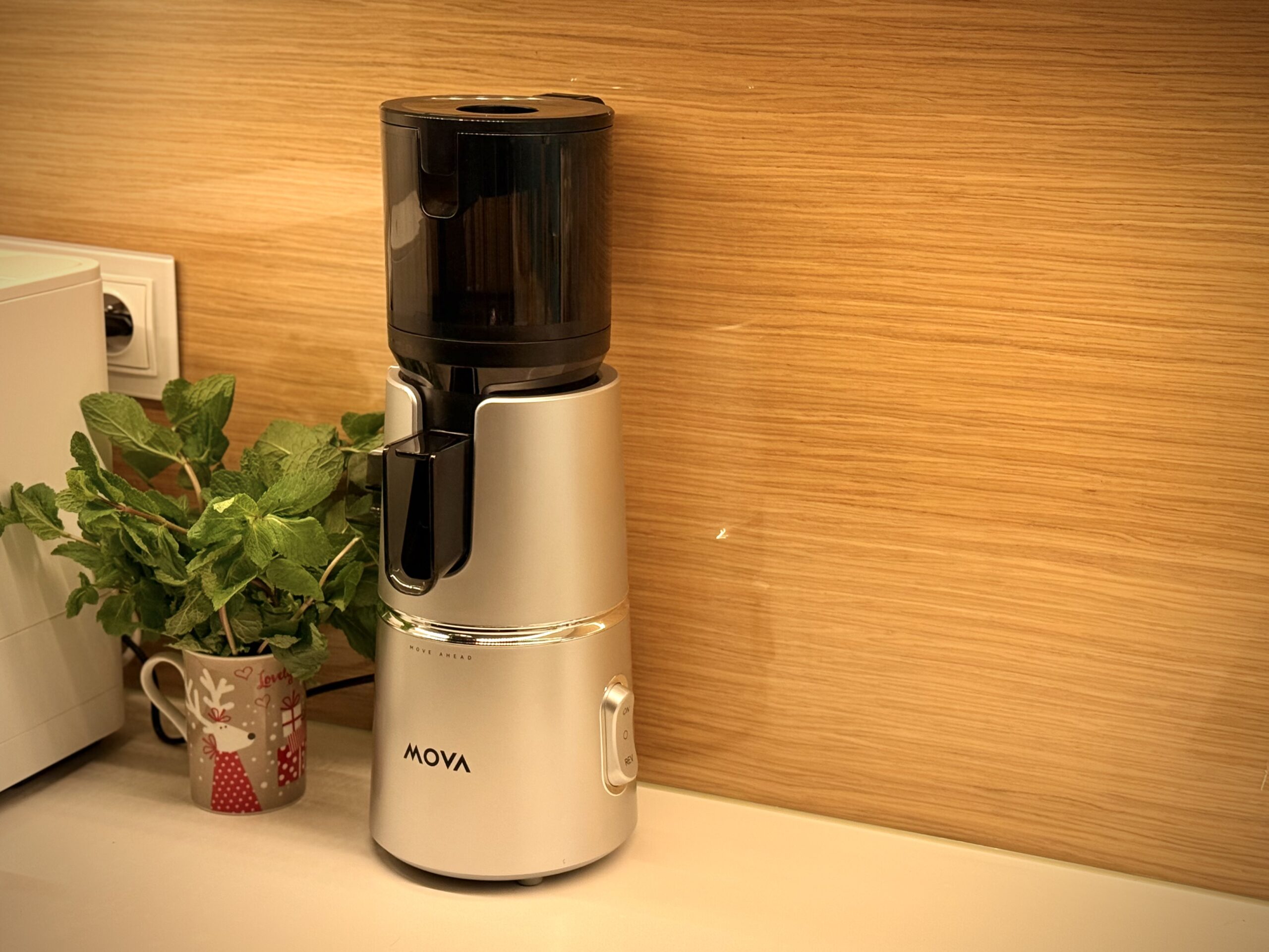 MOVA chwali się dwustopniowym procesem wyciskania – najpierw miażdżenie, potem wyciskanie – który ma poprawiać wydajność o około 10 procent. Trudno to dokładnie zweryfikować w warunkach domowych, ale w porównaniu z typową budżetową wyciskarką różnica w ilości soku przy tej samej porcji składników jest naprawdę zauważalna.