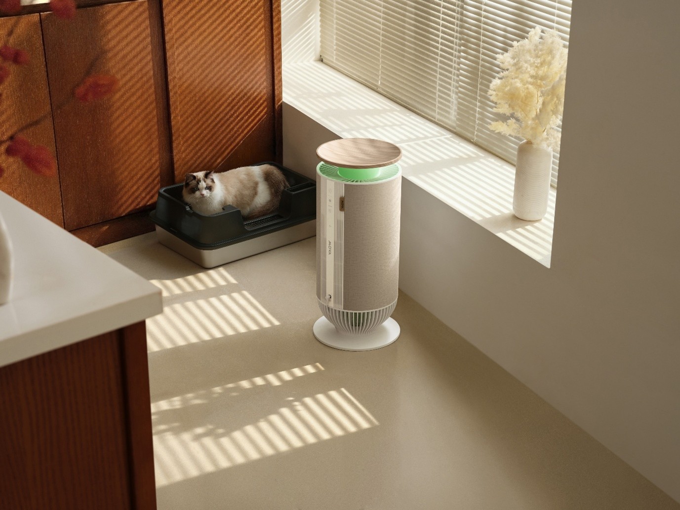 Jeszcze ciekawszy jest wątek zapachów. Puris P10 korzysta z technologii Solid Alkali, która według materiału ma nie maskować woni, lecz rozbijać wiązania molekularne związków takich jak amoniak czy siarkowodór, osiągając 99-procentową skuteczność dezodoryzacji. Brzmi to jak coś wyjętego raczej z zaplecza technicznego niż z katalogu domowych dodatków, ale akurat w świecie zwierzęcych zapachów każda różnica szybko staje się zauważalna. Bo dom, w którym mieszka kot albo pies, nie musi pachnieć sterylnością laboratorium, ale dobrze, jeśli nie ogłasza swojej obsady już od progu.