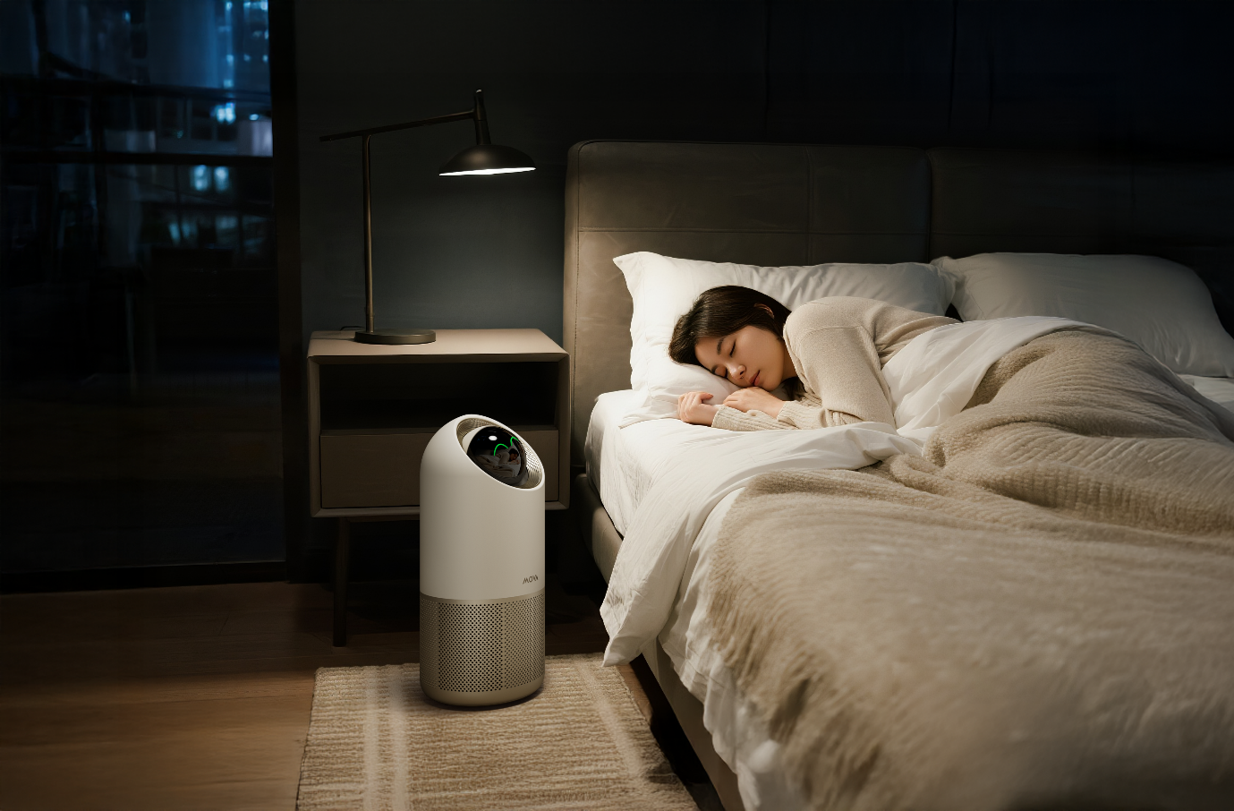 MOVA Stellar X10 Plus jest przeznaczony do pomieszczeń o powierzchni 15–20 m² i stanowi rozwinięcie wcześniejszego modelu Stellar X10. O ile bazowa wersja była szykowana raczej z myślą o pracy przy biurku, o tyle wariant Plus został ustawiony wyraźnie bliżej łóżka niż laptopa. To oczyszczacz do sypialni, czyli miejsca, w którym wszystkie drobne niedogodności z powietrzem nagle stają się większe. W dzień można machnąć ręką na lekki dyskomfort. W nocy nawet drobiazg potrafi urastać do rangi osobistego konfliktu z własnym nosem.