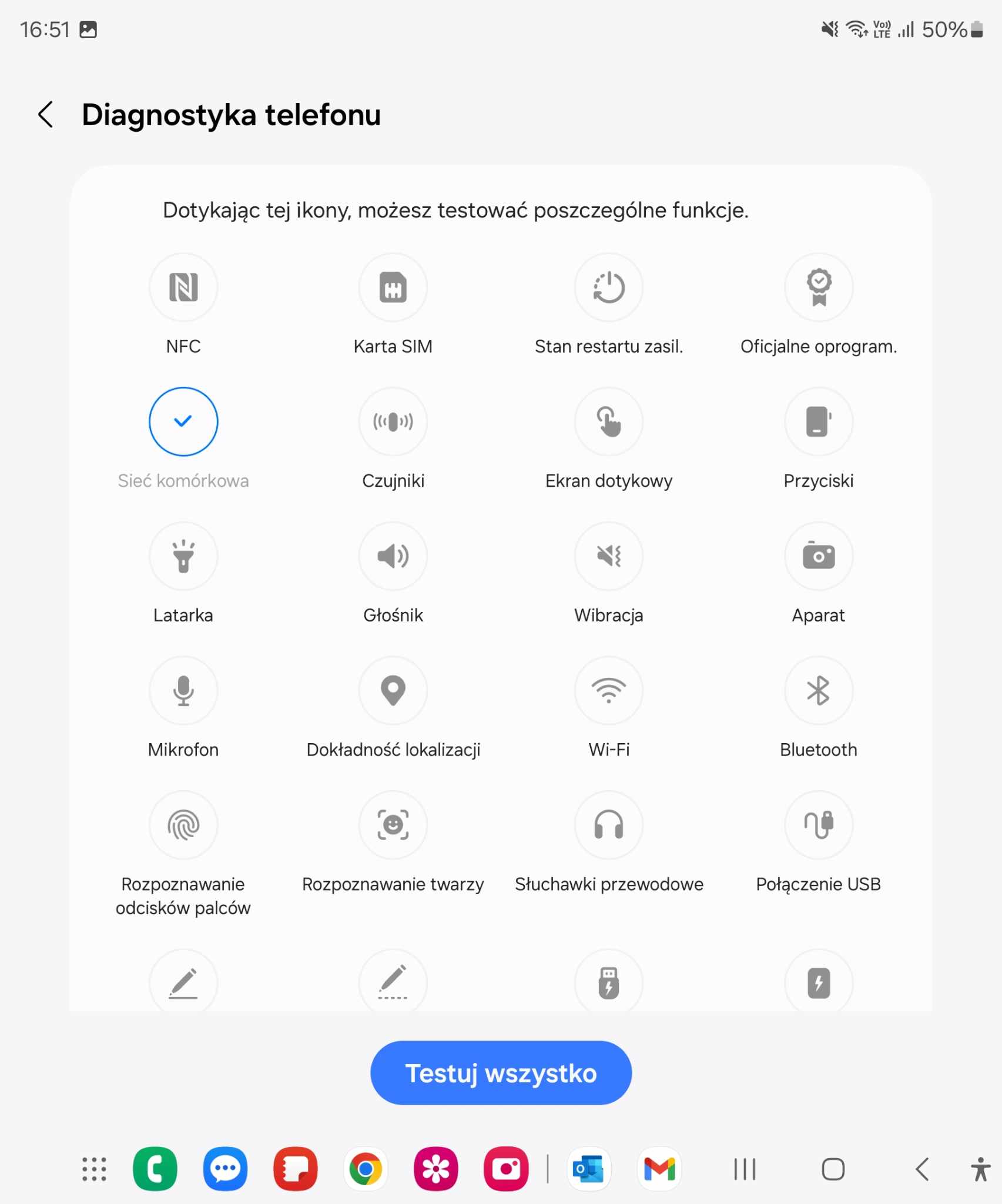 Samsung przewidział różne możliwości (znajdziemy tu test rysika S-Pen) co jest zależne od konkretnego modelu. Obsługa jest naprawdę prosta. Podłączamy konkretne akcesorium lub włączamy wybraną funkcję, którą chcemy sprawdzić. Urządzenie samoczynnie wykona test. Jeśli mamy podejrzenia, że np. jedno z gniazd na kartę sim nie działa prawidłowo możemy to sprawdzić. Po wykonaniu testu urządzenie wyświetli nam dokładnie numer w zależności, na jakim numerze imei znajduje się konkretny numer telefonu. Warto pamiętać, że tego typu diagnostyka pozwala nam potwierdził wadę przed samym serwisie Samsung. Zdarza się, że niektóre punkty serwisowe nie widzą usterki, ponieważ nie występuje ona w danym momencie. Są to najczęściej wady okresowe występujące w konkretnych momentach lub zależne od lokalizacji. Warto pamiętać o tej funkcji, bo można sobie zaoszczędzić sporej ilości problemów.